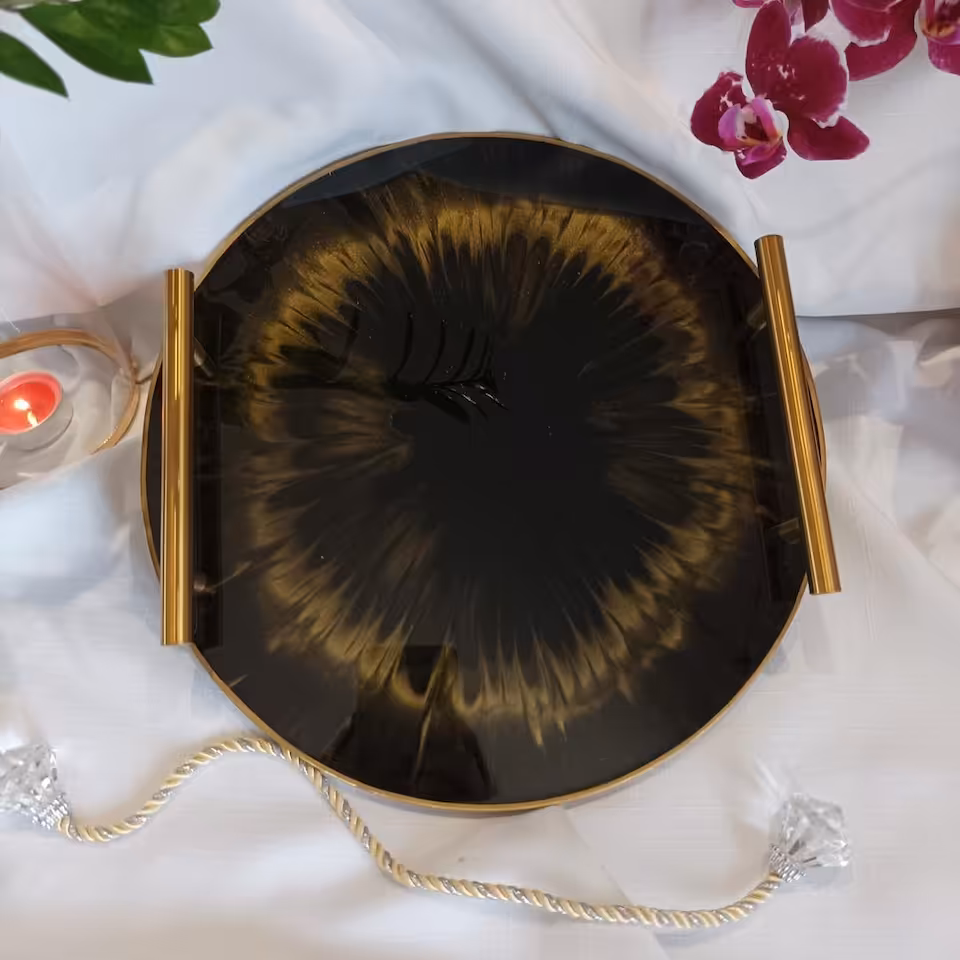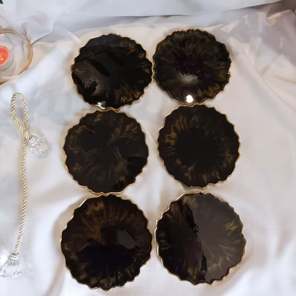 Ręcznie wykonany zestaw z żywicy epoksydowej w czarno - złotej kolorystyce.